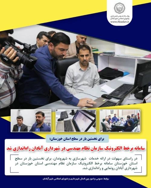 در راستای سهولت در ارائه خدمات شهرسازی به شهروندان، برای نخستین بار در سطح استان خوزستان سامانه برخط الکترونیک سازمان نظام مهندسی استان خوزستان در شهرداری آبادان رونمایی و راهاندازی شد.